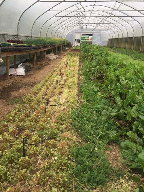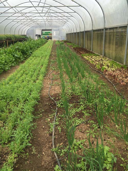 The polytunnels are used to extend the growing season on Redmond Farm. Tomatoes, salads & herbs are started off from seed straight after Christmas. Broad Beans & the earliest peas will be sown throughout October for Summer 2019. The poly tunnels offer protection from wind & rain and enable us to continue cropping salads & herbs well in to the Autumn & early Winter. We also use them to ‘season’ field grown pumpkins & squash- placing the pumpkins on benches and turning them regularly to harden the skin & ripen them.